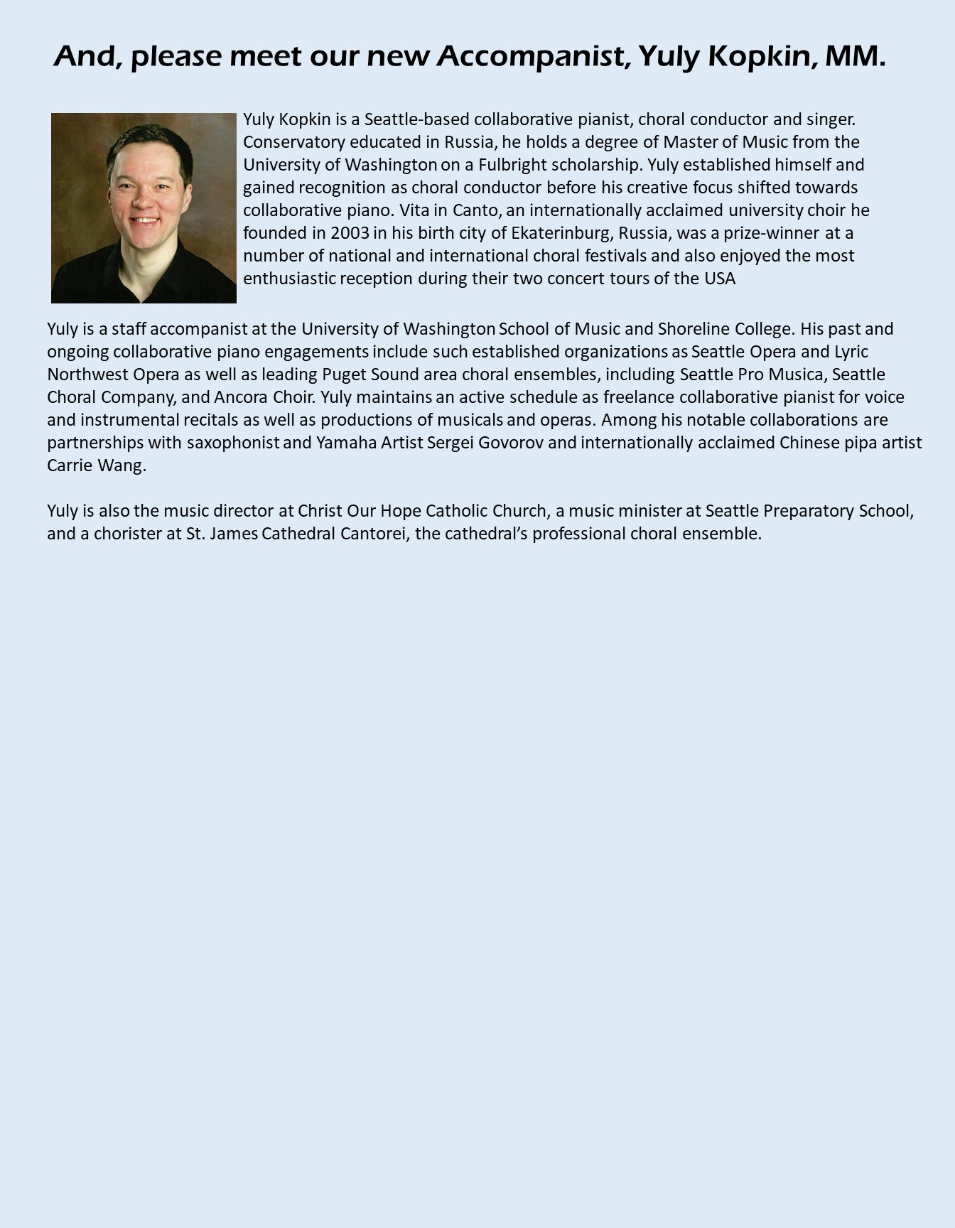 We are so fortunate to have skilled, talented, and dedicated people working with the choir.